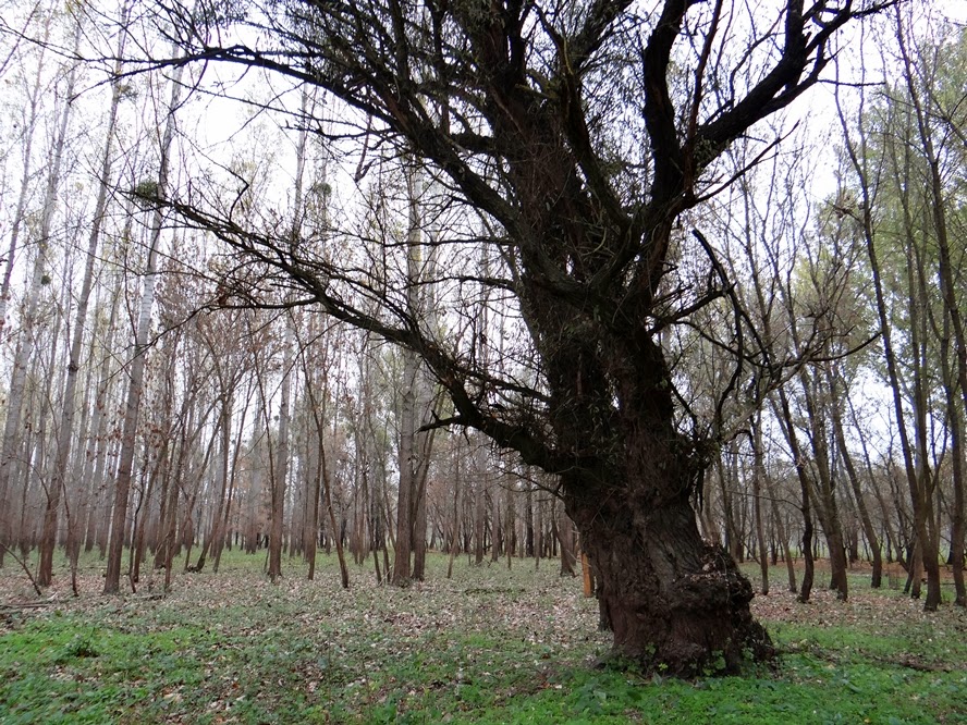 | A fiatal telepítésben több nagy fűz áll erre |