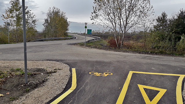 | Hivatalosan tehát erről az oldalról ez a kőzúzalékos szakasz gyalogos és kerékpáros út. Furcsának találom, hogy egy 4,3 milliárdos beruházásnál ez a rövid szakasz kimaradt. Nem tudom be lesz-e fejezve. Valami munkálat zajlik most itt, de lehet, hogy ez csak az út menti fák gallyazása, szelektálása. Ha megtudok valamit, kiegészítem a bejegyzésem. Frissítés: Önkormányzati forrásokból úgy értesültem hogy a terület a tejipari cég tulajdonában van, és az önkormányzat megpróbál nyomást gyakorolni a cégre, hogy készítsék el a hiányzó szakaszt. |